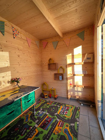 In unserem Haus gibt es verschiedene Bereiche zum Spielen. Ein Spielzimmer lädt zum freien Spiel ein. Hier sind Duplos, Fahrzeuge, Spielfiguren, Eisenbahn-Bauteile und vieles mehr zu finden. Eine Kiste voller Requisiten und Kostümen lädt zum Verkleiden und Rollenspiel ein. Zudem findet man in diesem Zimmer ein E-Piano und Xylophone für Musik interessierte Kinder.